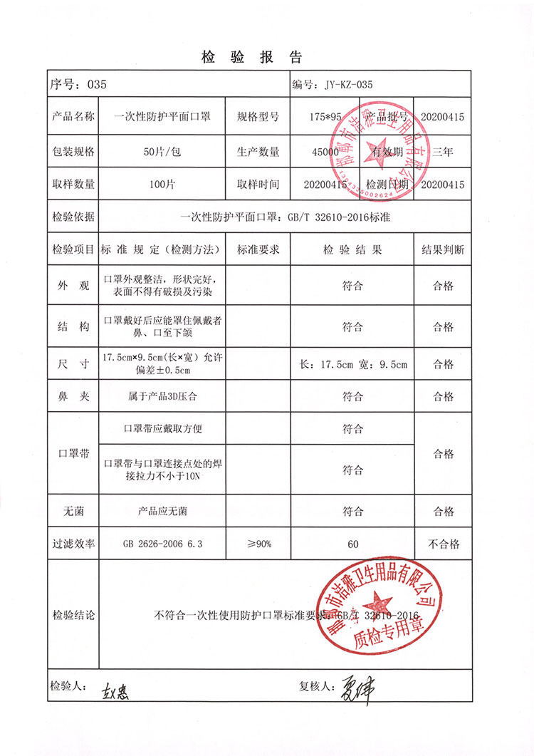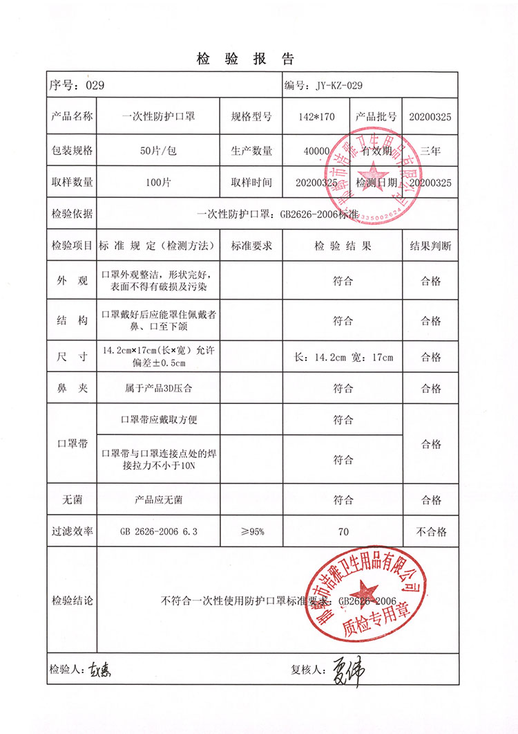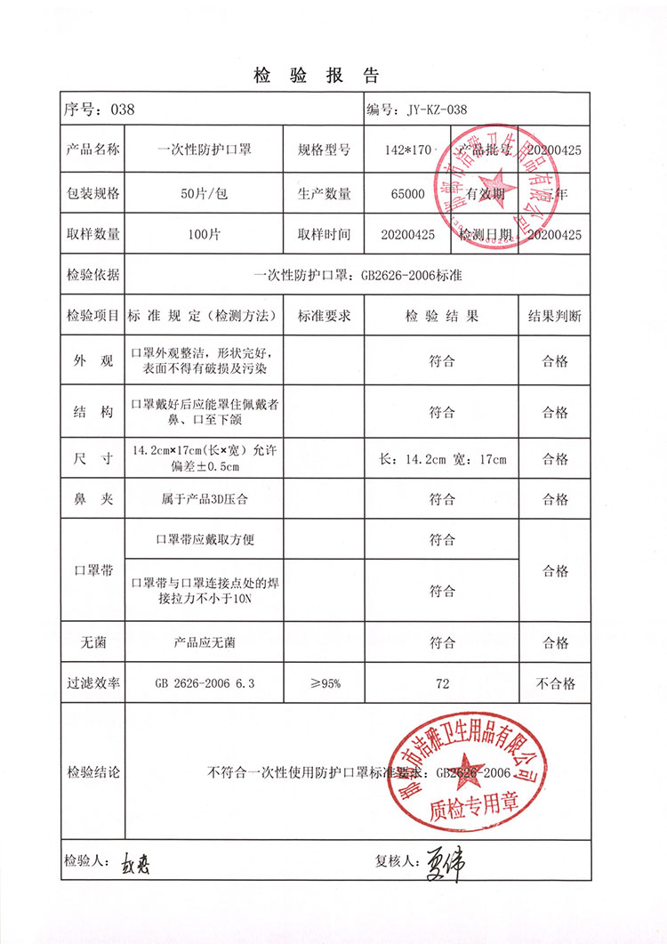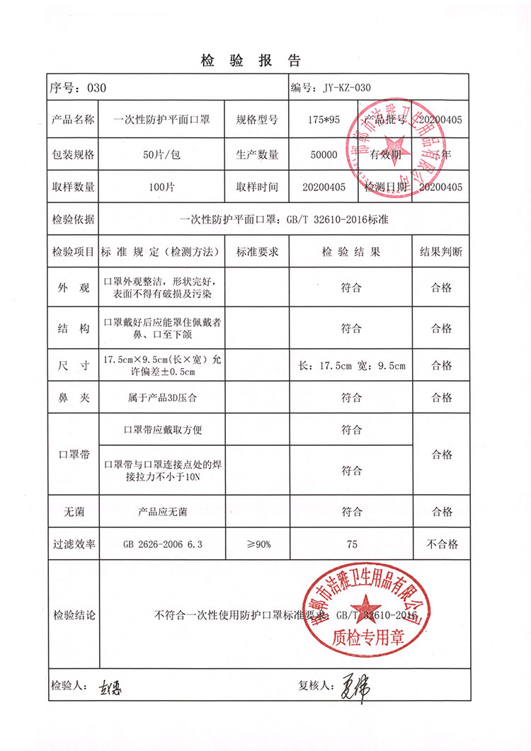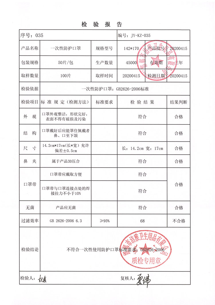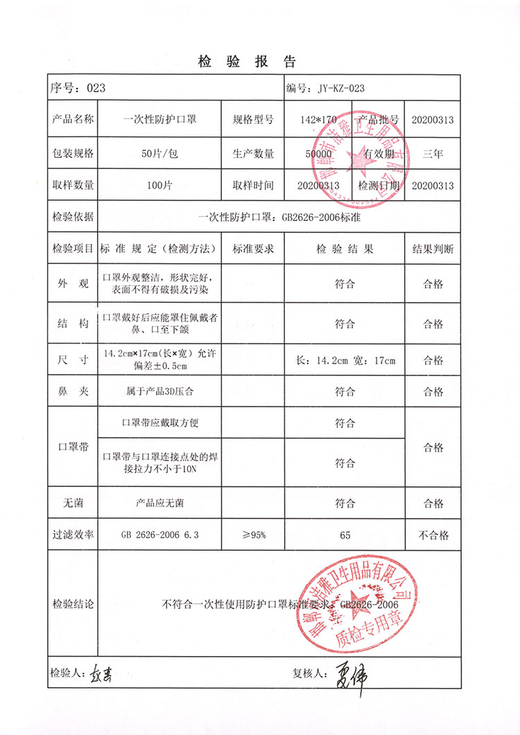 邯鄲市潔雅衛生用品有限公司生產的品牌為JYM93D立體口罩一次性平面口罩,為非醫用防護口罩;KN95 防護口罩非醫用。生產日期為:2020年3月10日至2020年4月30日,在此期間生產的部分產品有質量問題,在疫情期間因供應商供應的熔噴布質量部分出現不達標,造成產品不合格。望各省、市市場監管部門如發現我們公司產品進行告知,各銷售商如還有我公司產品,望您告知我公司業務人員,我公司將安排技術人員上門檢驗,批次產品是否合格,如發現不合格產品,我公司進行召回,不合格產品按進貨價給予退回。望各省市市場監管部門給予幫助召回召回日期為2020年8月25號至2020年9月25號